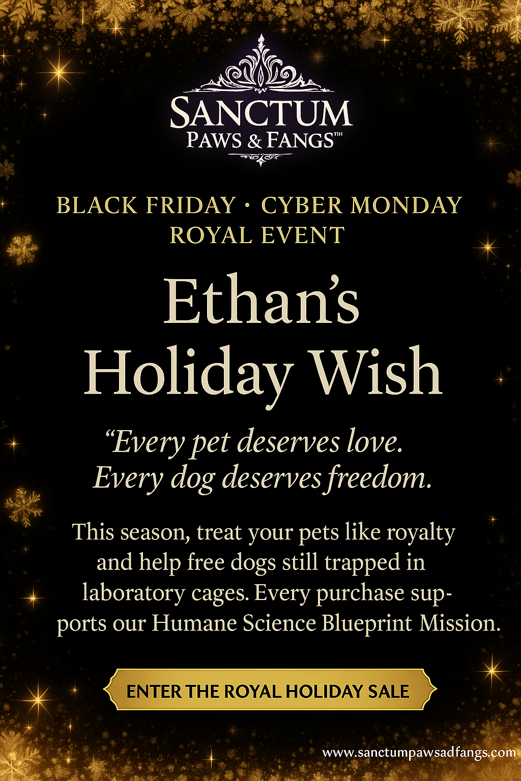 On November 26th, 2024, I met Ethan—a beagle born in a breeding facility that supplied thousands of dogs to laboratories. He was one of the 4,000 Envigo beagles rescued in 2022, adopted once, then surrendered 2 years later with no toys, no records, nothing but a tattoo and a second chance. That tattoo told his story: a life that began as a commodity, not a companion. In the year since he came home, Ethan has taught me that every animal deserves more than survival—they deserve love, dignity, and freedom. Sanctum Paws and Fangs exists because of him: premium products for the pets we cherish, and every purchase funds our Humane Science Blueprint Mission to end the industry that created dogs like Ethan in the first place.