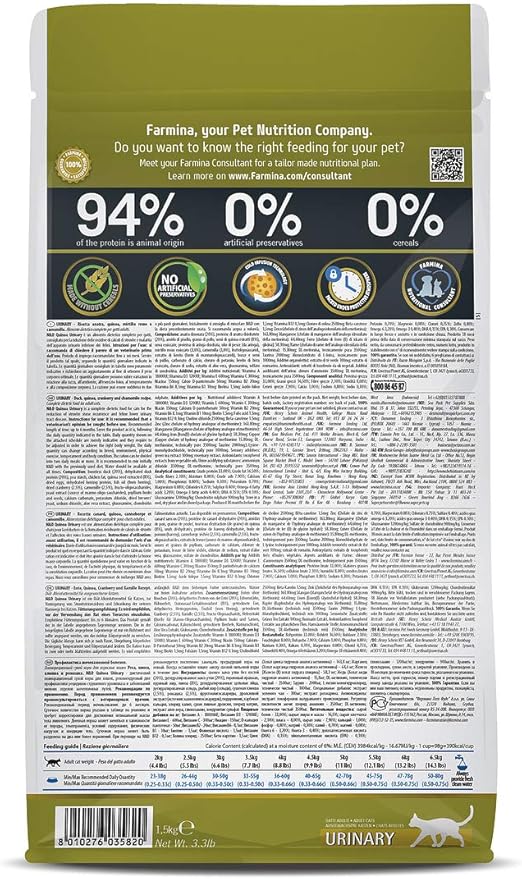 Ingredients: boneless duck, dehydrated duck, pea starch, chicken fat, quinoa seed, dried whole eggs, dehydrated herring, herring oil, dried cranberry, chamomile, fructooligosaccharide, yeast extract, psyllium seed husk, calcium carbonate, potassium chloride, brewers dried yeast, salt, vitamin A supplement, vitamin D3 supplement, vitamin E supplement, ascorbic acid, niacin, calcium pantothenate, riboflavin, pyridoxine hydrochloride, thiamine mononitrate, biotin, folic acid, vitamin B12 supplement, choline chloride, beta-carotene, zinc methionine hydroxy analogue chelate, manganese methionine hydroxy analogue chelate, ferrous glycine, copper methionine hydroxy analogue chelate, DL-Methionine, taurine, aloe vera gel concentrate, green tea extract, rosemary extract, mixed tocopherols (a preservative).