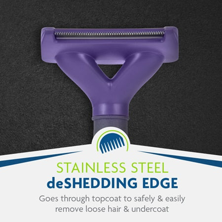 - REMOVES LOOSE HAIR: Stainless steel deShedding edge reaches through topcoat to safely and easily remove loose hair and undercoat without damaging topcoat or cutting skin*