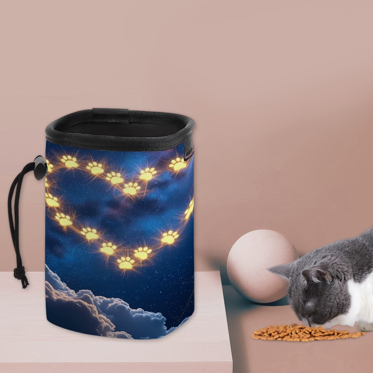 - Features a spacious interior with an adjustable drawstring to securely store a variety of pet treats and toys.