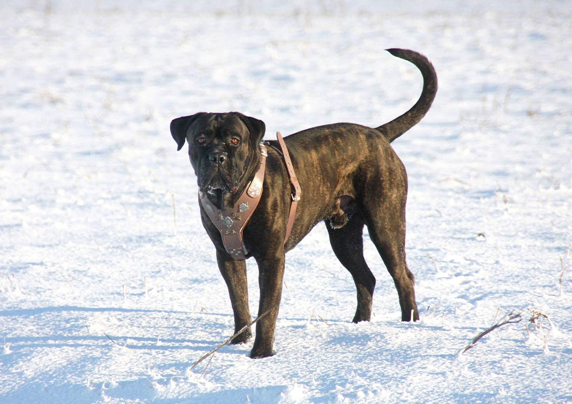 Fits perfectly on all large breeds, like: Pitbull, cane corso, American Bully, American Bulldog, Bulldog, Presa canario, Rottweiler, Boxer, Amstaff, Staffordshire terrier, Bullmastiff, and many more..
