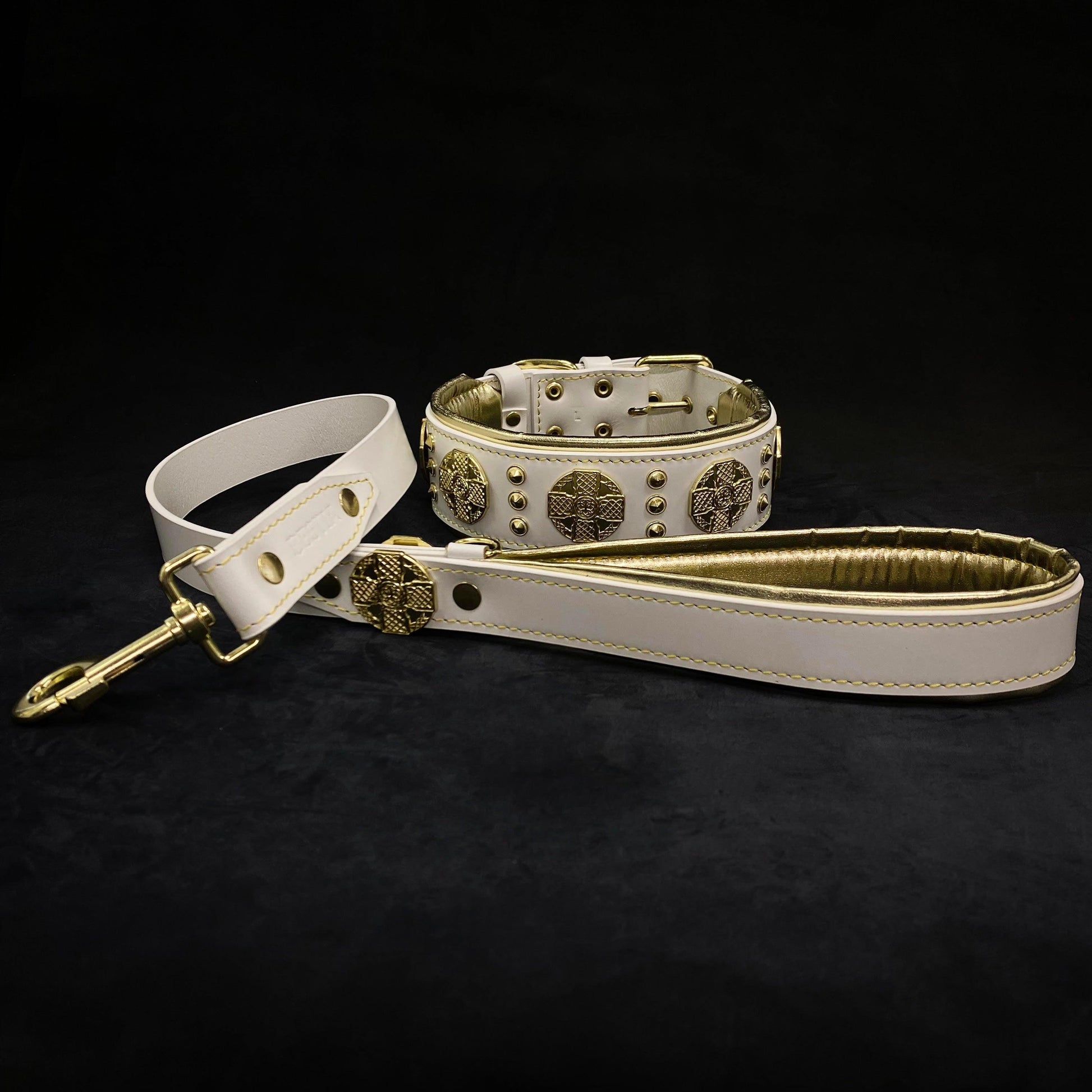 The "Maximus" collar 2.5 inch wide white & gold